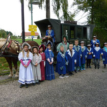 An diesem Vormittag erhalten die Kinder einen Einblick in das Leben von früher, die Verkleidung und die kurze Fahrt mit der Pferdeeisenbahn sind immer ein Höhepunkt.